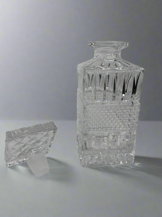 Vintage Crystal Decanter with Square Stopper – Elegant Cut Design Decoration