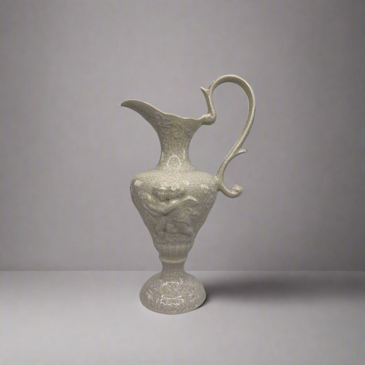 Vintage White Ceramic Handle Vase Urn Cherubs Made In Portugal Decoration Decor