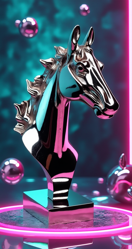 Pewter Silver Metal Horse Head Shiny Figurine Statue on Stand Decorative Bust