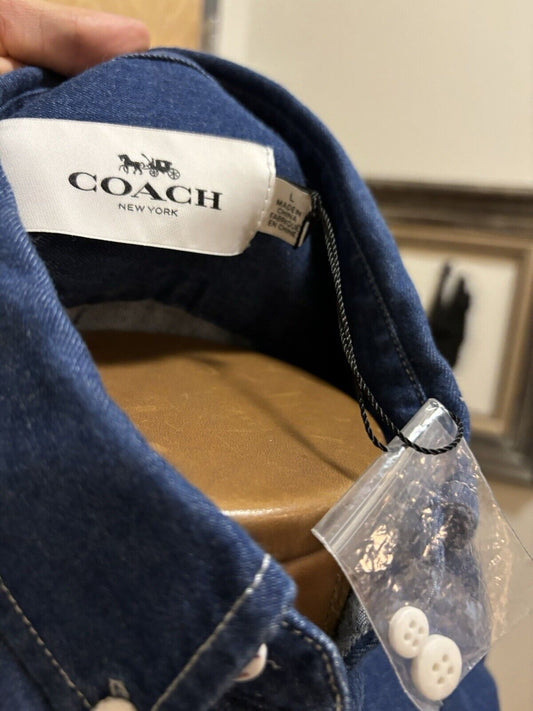 COACH Brand Traditional Blue Denim Button-Up Shirt | 100% Cotton Size L ($250)