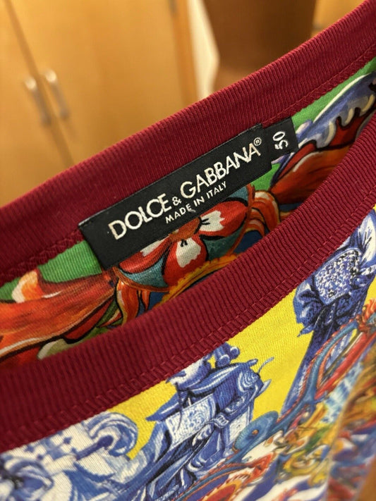 DOLCE & GABBANA Caretto Siciliano T-Shirt Multicolor Size 50 Made In Italy($845)