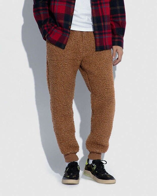 Rare COACH Real Shearling Sherpa Joggers/ Sweat Pants Honey Brown Size M ($450)