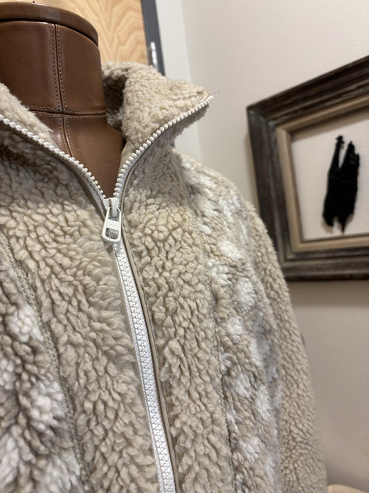 New COACH Runway Sherpa Fur Coat Jacket Zip Signature Print Cream Size L ($695)