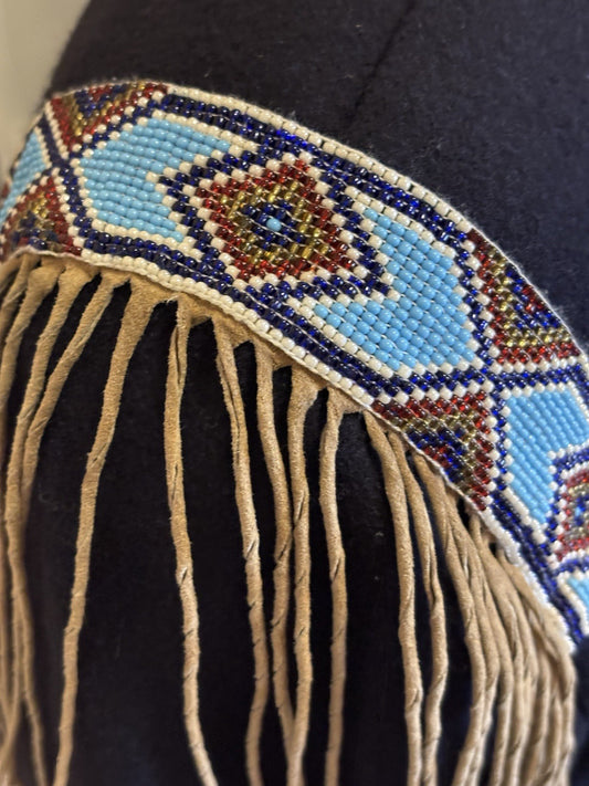 Double D Ranch VINTAGE Wool Jacket Military Beaded NavyBlue Varsity Stripe Small