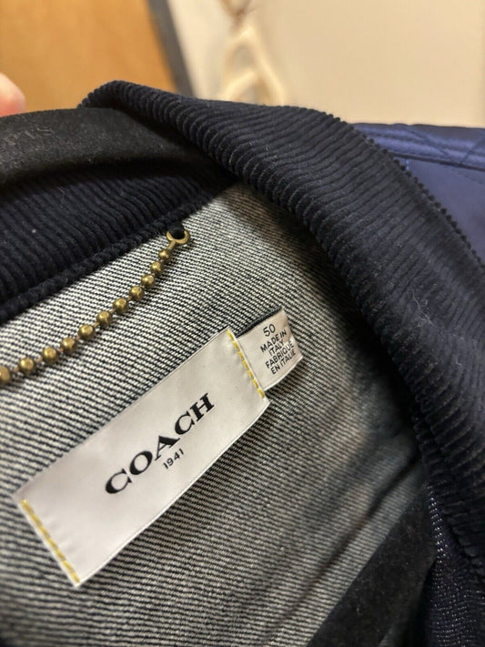Designer COACH Lamb Leather Jacket Reversible W/ Hood Navy/BLK Sz 48 (Org $1295)
